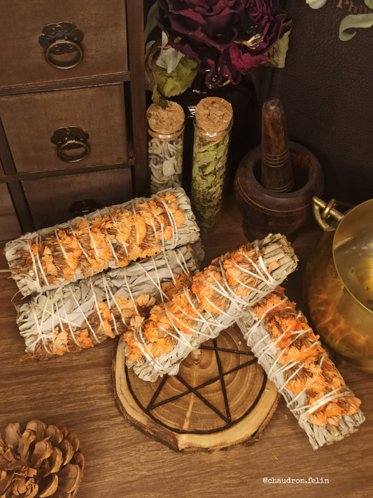 Bâton de Fumigation de Sauge Blanche et Limonium sinuatum Orange
