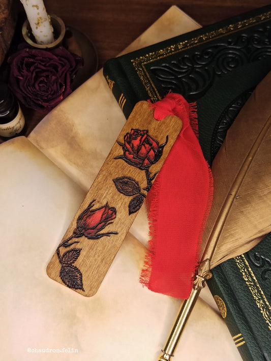 Marque Page en bois - Roses Rouges