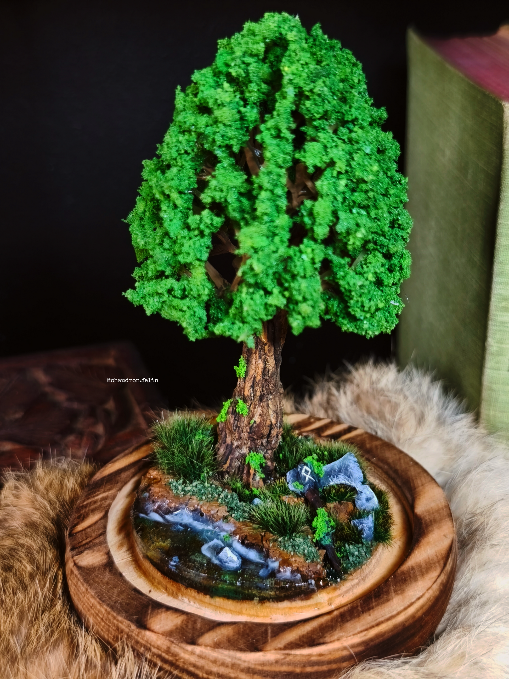 Chaque détail de ce diorama a été pensé, assemblé, décoré et peints à la main, de l'arbre à la hache, en passant par la végétation, faisant de cette création une pièce unique et exclusive. Un fragment de légende nordique où histoire, nature et poésie se rencontrent.