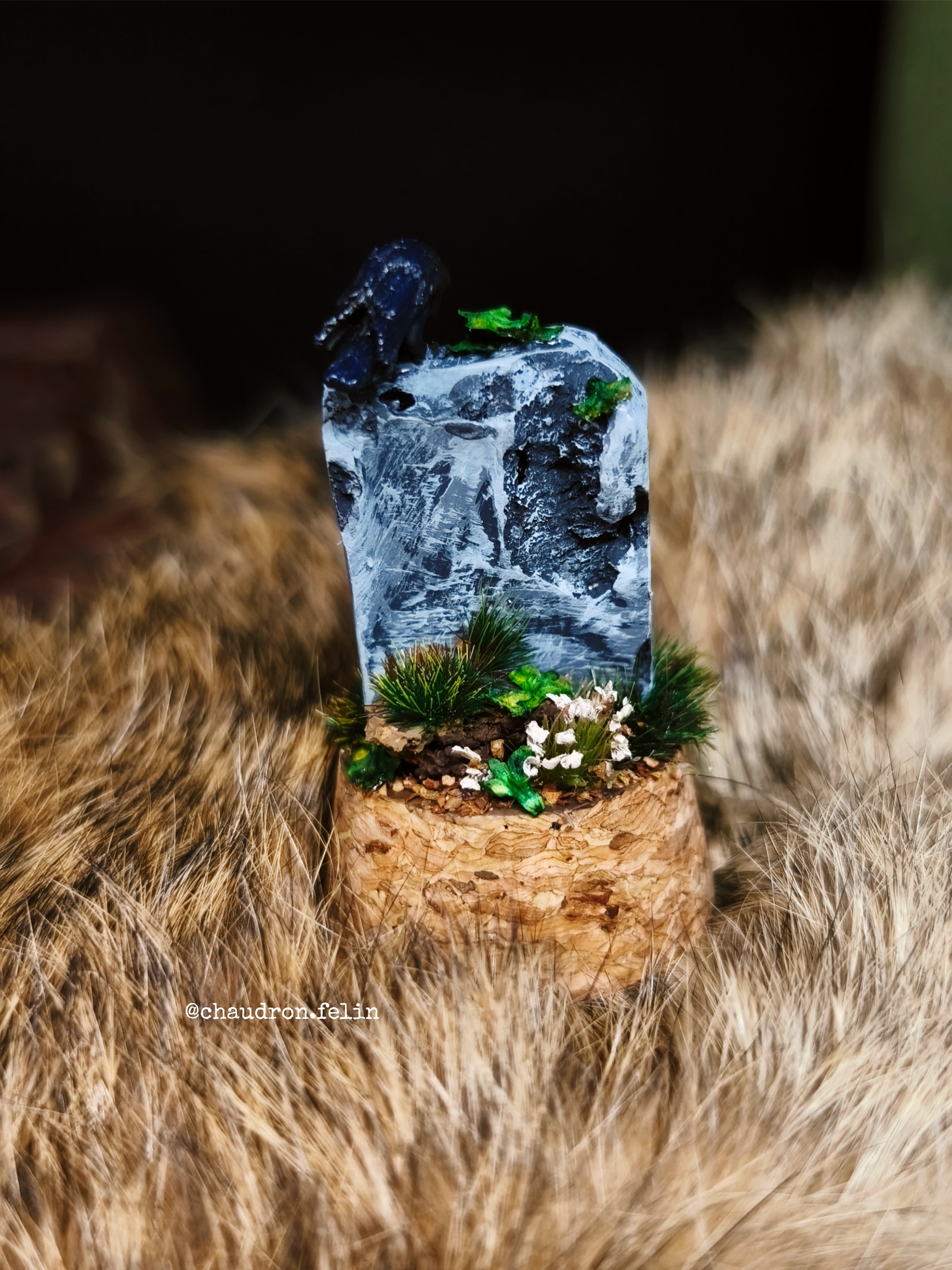 Sous chaque coche de verre, chaque diorama miniature devient un monde suspendu où la nature, la magie et la légende nordique se rencontrent : corbeaux gardiens, hache oubliée, chat messager ou la nature reprenant ses droits se dévoilent autour de la stèle.